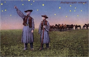 More than thousand years ago Hungarians were basically nomad people, living on keeping animals (pasturage), very close to the Nature. Thus, they had many tales, legends about the stars and constellations. The earliest detailed study of the ancient stellar and constellation names were collected and published by Ede Toroczkai-Wigand (1869-1945) in 1915 (Old Stars). On the course of time, there were several trials to collect more ancient telltales, legends amongst countryside poor people. The pasturage is still an existing profession, those people form a relatively closed, separated subgroup of the Society, they pass the basic knowledge from generation to generation – and as its part, the beliefs and legends, too. The latest study of the still-existing old starry tales and related beliefs of pastorage culture done by István Gyarmathy, during the last few years, amongst Hortobágy Plane pastors. He submitted the results to UNESCO, as a suggestion to include them into the World Cultural Heritages.